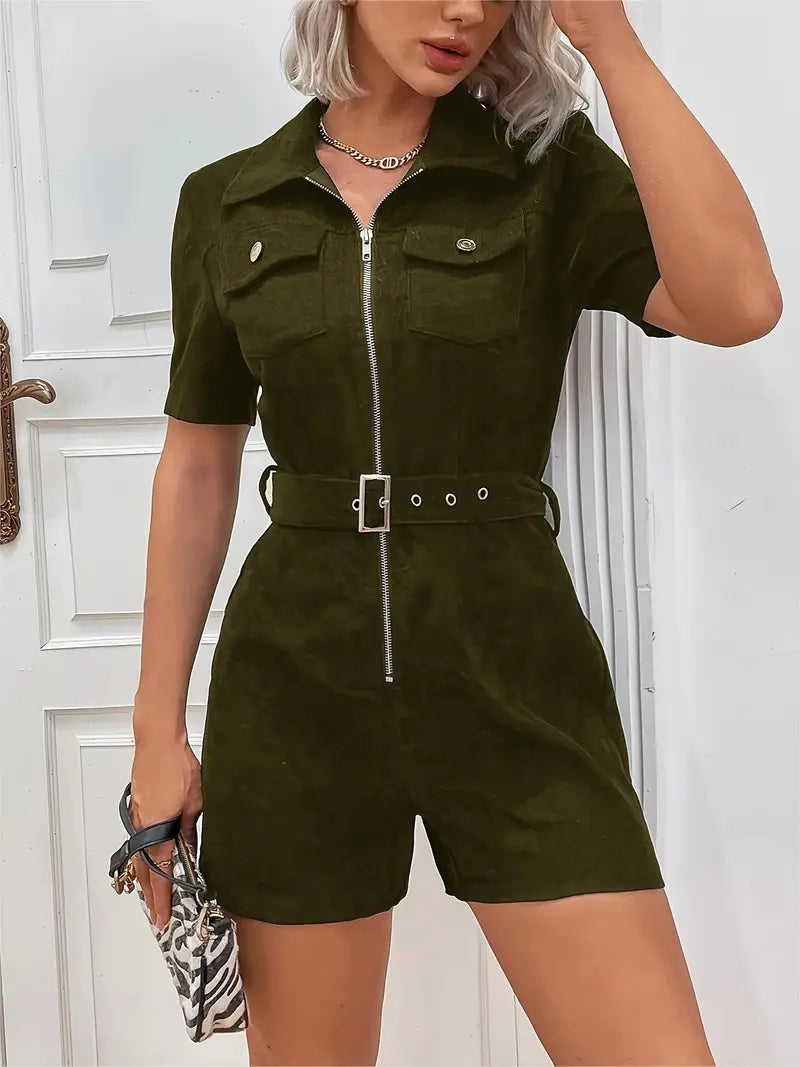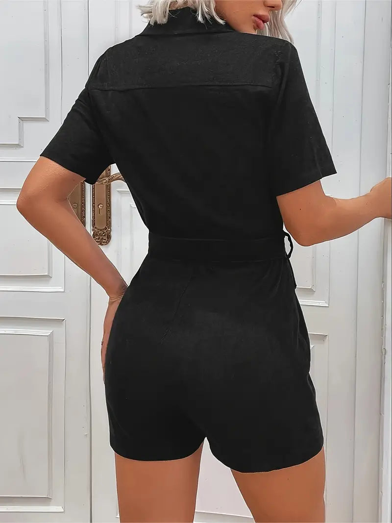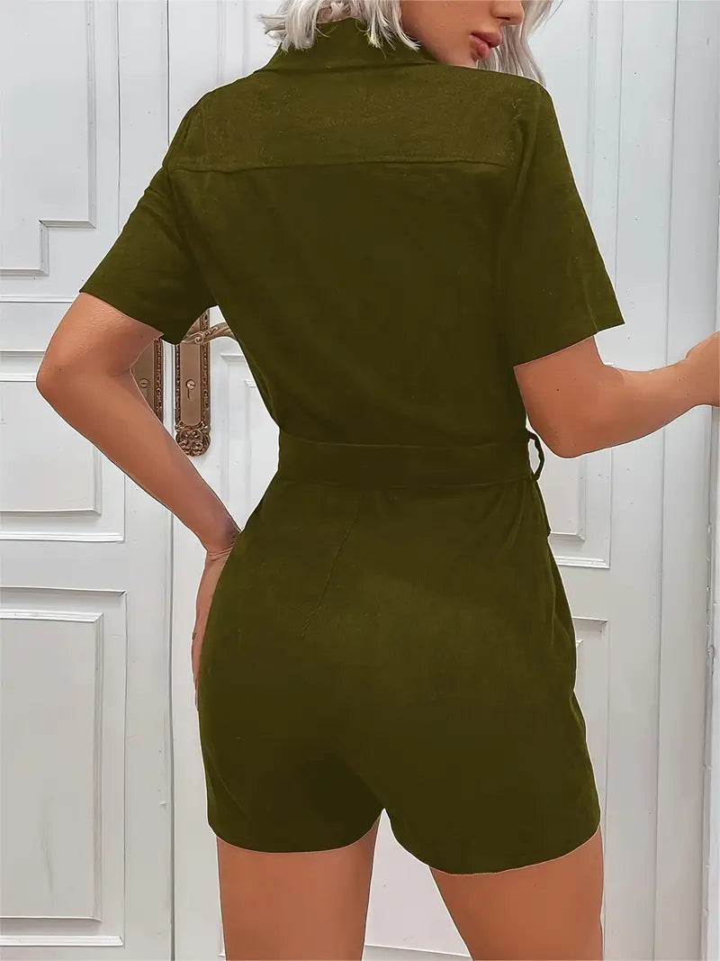 Eilly Bazar Women's Corduroy Short Sleeve Jumpsuit
