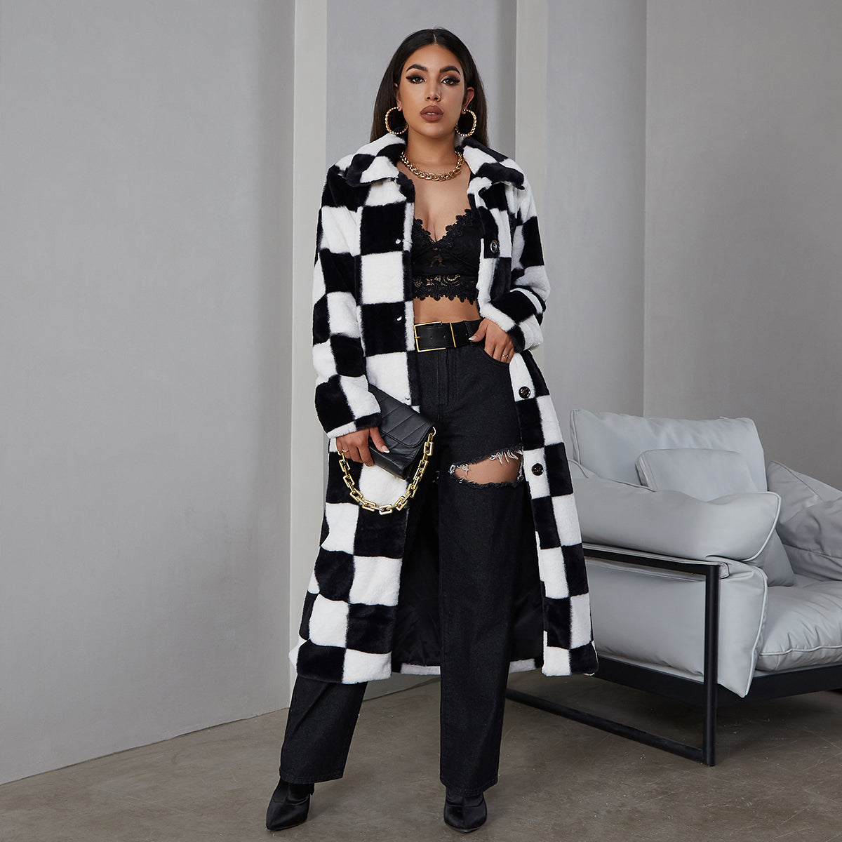 Eilly Bazar Women's Plaid Faux Fur Jacket